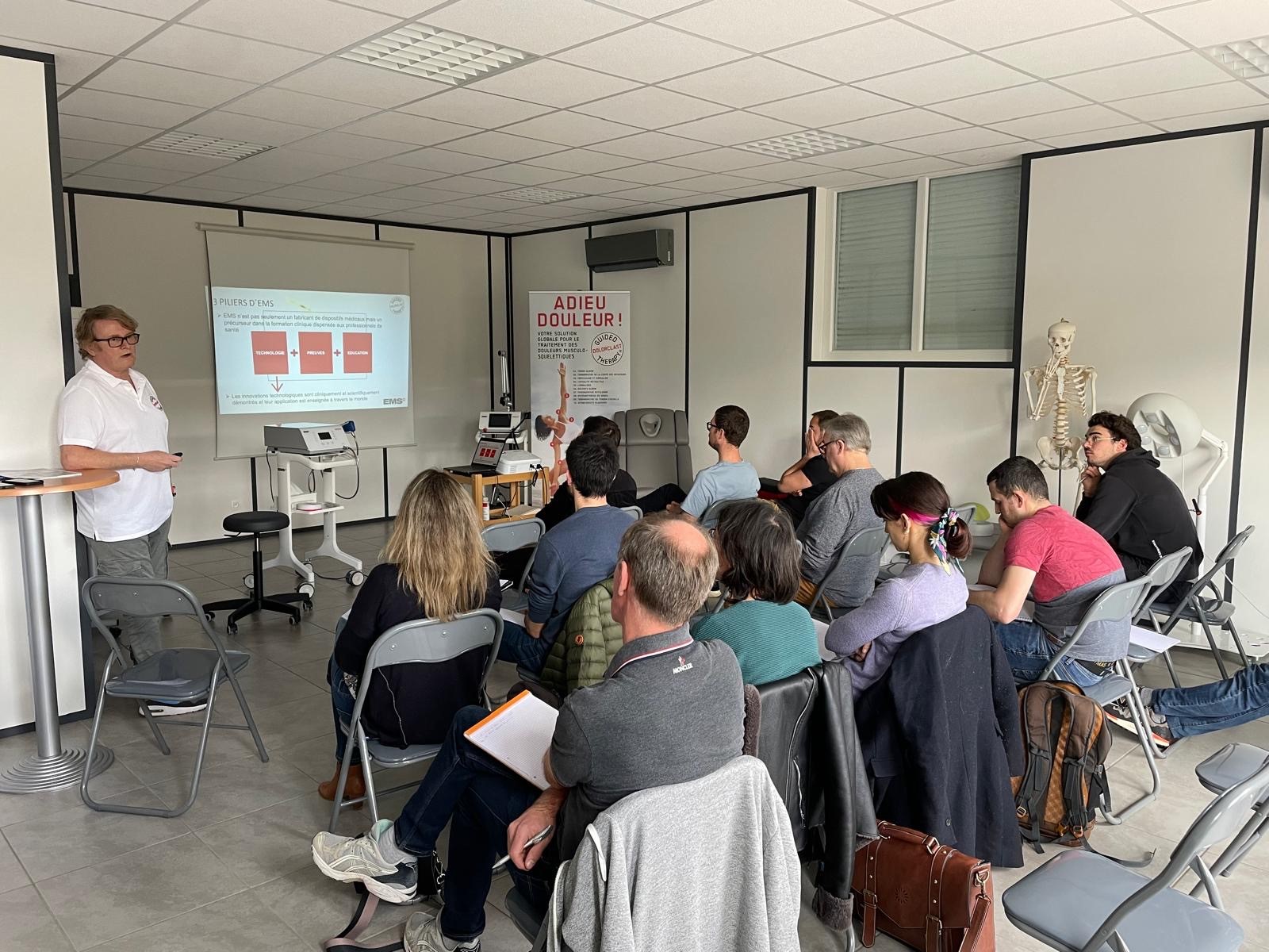 La Swiss DolorClast® Academy propose des formations basées sur les preuves scientifiques ainsi qu'un atelier pratique. Les protocoles utilisés sont ceux présents dans les machines EMS. En effet, ils ont fait scientifiquement la preuve de leur efficacité.